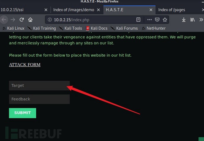 将上面index页面中的payload复制一下,粘贴到表单中进行提交