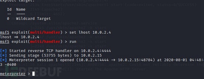 启动监听,使用metasploit对4444端口进行监听