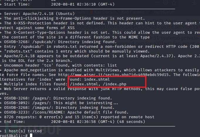 分析nmap、nikto扫描结果,并对结果进行分析,挖掘可利用的信息;