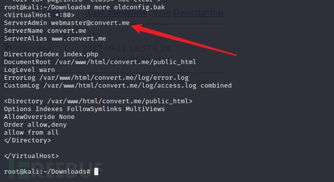 挨个查看,看看有无敏感信息。可以下载下来,more查看内容,发现一个可能有用的信息,根据前几次的经验,这里可能是个用户名webmaster;只是可能。还有就是站点根目录的位置已经得到了。