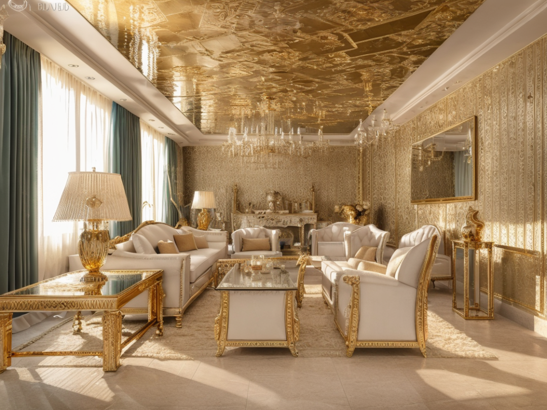 (8k,RAW photo,best quality,masterpiece:1.2),realistic, photo-realistic,,living room,luxury,extravagant,spacious and bright,gold,italian style,