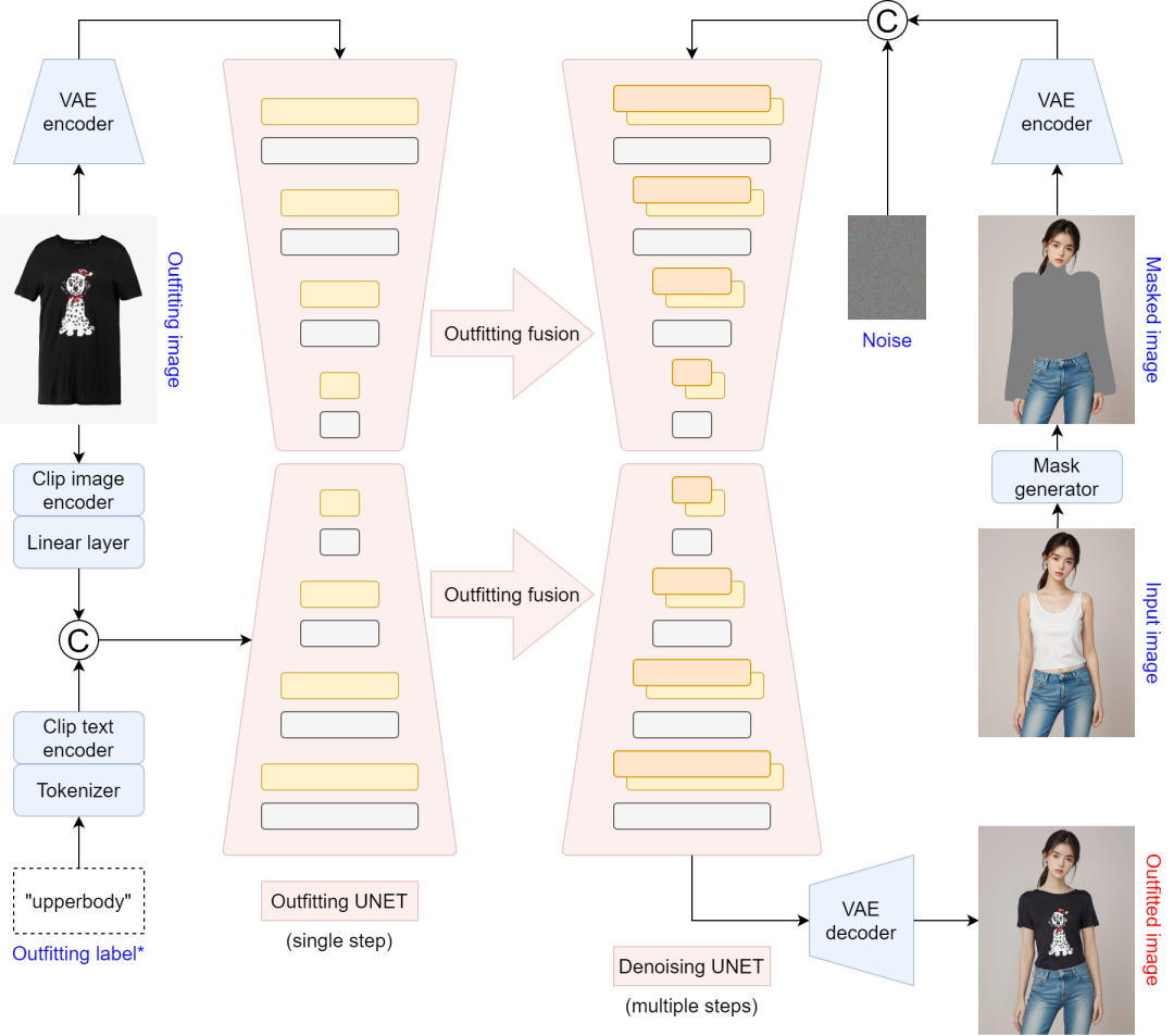 项目地址:https://github.com/levihsu/OOTDiffusion。模型架构如下所示: