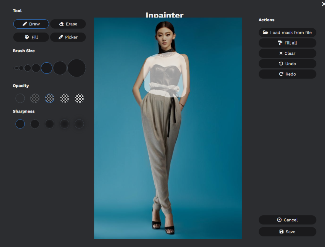 - 通过局部重绘,将上衣部分进行涂抹,重新绘制新的服饰。
