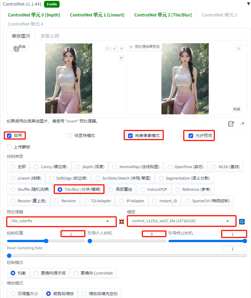 ControlNet单元3:tile控制模型用于控制画面颜色的一致