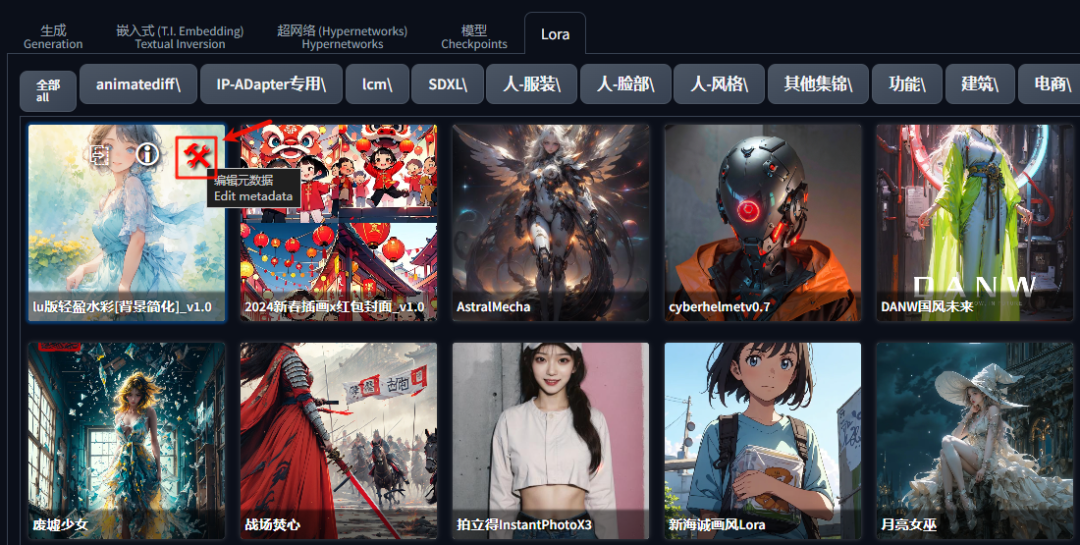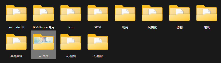 为了方便管理,可以在 Lora文件夹中,新建不同类型的文件夹进行分类: