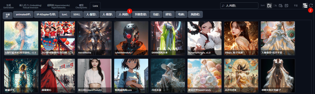 例如,我将新下载的 LoRA模型 放置在人-风格文件夹中,