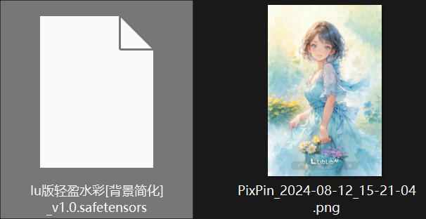 将 模型及详情页中的一张展示图片 下载下来,并命名一样的名字,以便SD将图片识别为该模型的封面图片: