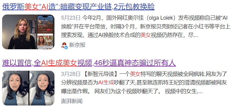 今年2月,国外网红奥尔佳(olga Loiek)发布视频称自己被“AI换脸”并在平台带货。
