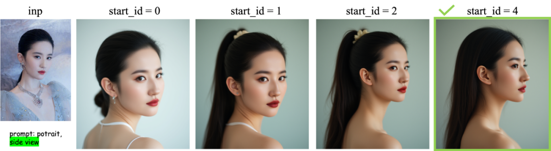 开始插入ID的时间步:此参数控制ID插入的时机。如果设置为0,则ID从第一个时间步开始被插入到DIT中。越早插入,ID的保真度越高,但可编辑性可能会降低。越晚插入,对ID的忠实度越低,但可编辑性会增加,对原始模型行为的干扰也会更小。对于生成逼真图像,建议将其设置为4。如果发现ID的相似性不够高,可以尝试相应降低此参数。对于生成风格化图像,建议将其设置为0-1。