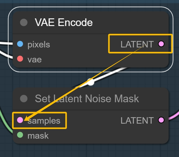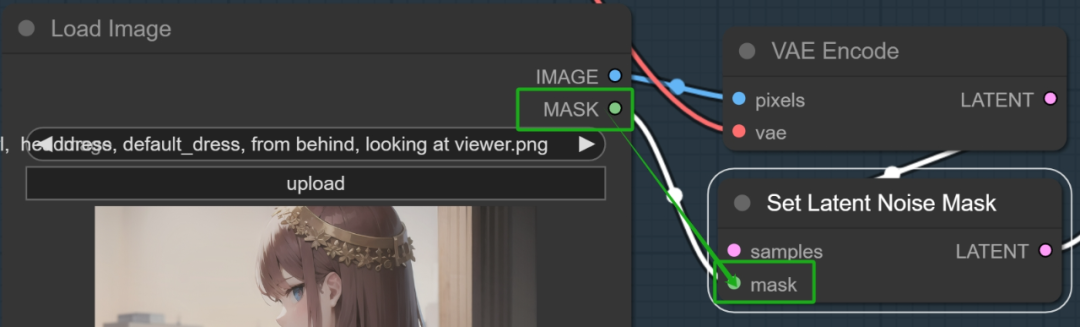 **VAE Encode的LATENT链接Set Latent Noise Mask的samples