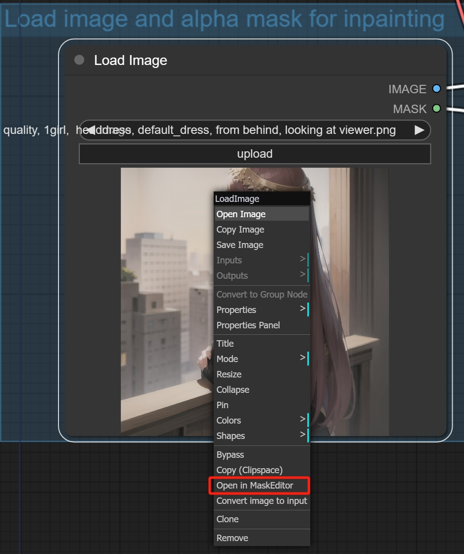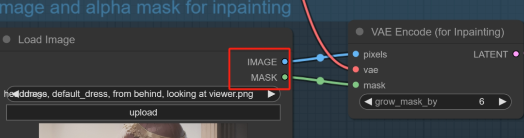 可以看到Load Image有两个端口一个输出IMAGE图像,另一个输出MASK蒙版。