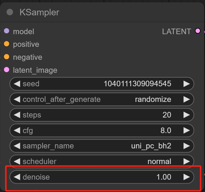 同样这里KSampler里的重绘幅度(Denoise)也决定了重绘力度的大小