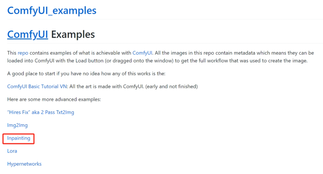 来到开发者提供的网页中,找到这个Inpainting的选项点击进去。