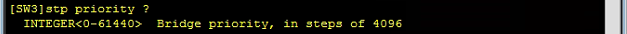 • 范围:优先级的范围不<0-61440>,它的值是4096的倍数。
