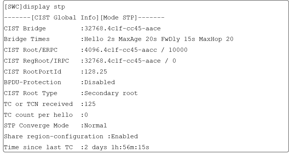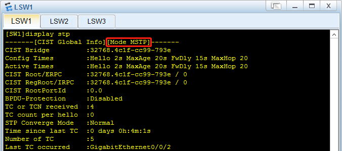 • 华为交换机在出厂的时候,实际已经启用了生成树,默认的生成树为MSTP: