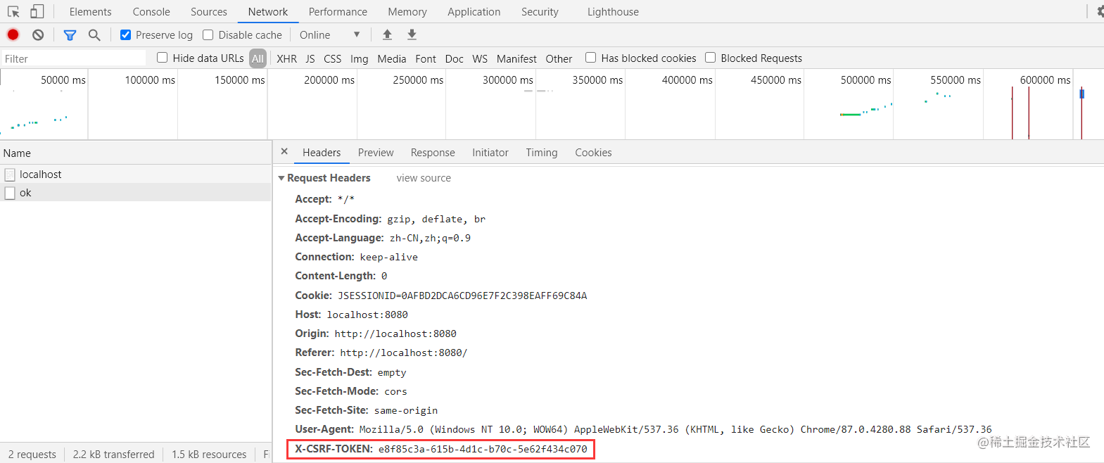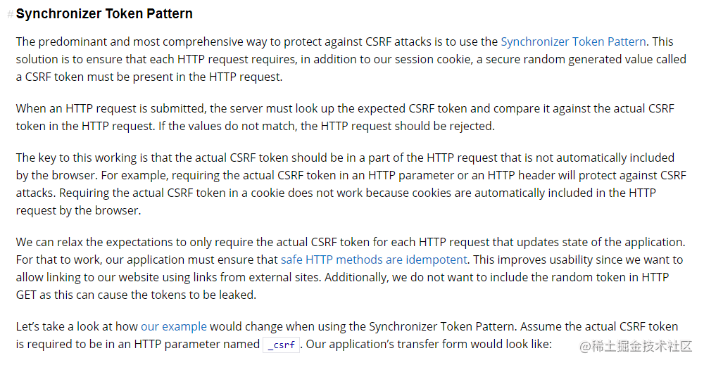 从官网中可以知道,CSRF防护的关键在于我们发请求时附带一个随机数(CSRF token),而这个随机数不会被浏览器自动携带(eg: Cookie就会被浏览器自动带上)。