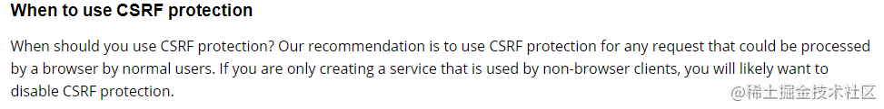 官方文档建议,但凡涉及到浏览器用户操作,均应启用CSRF防护。