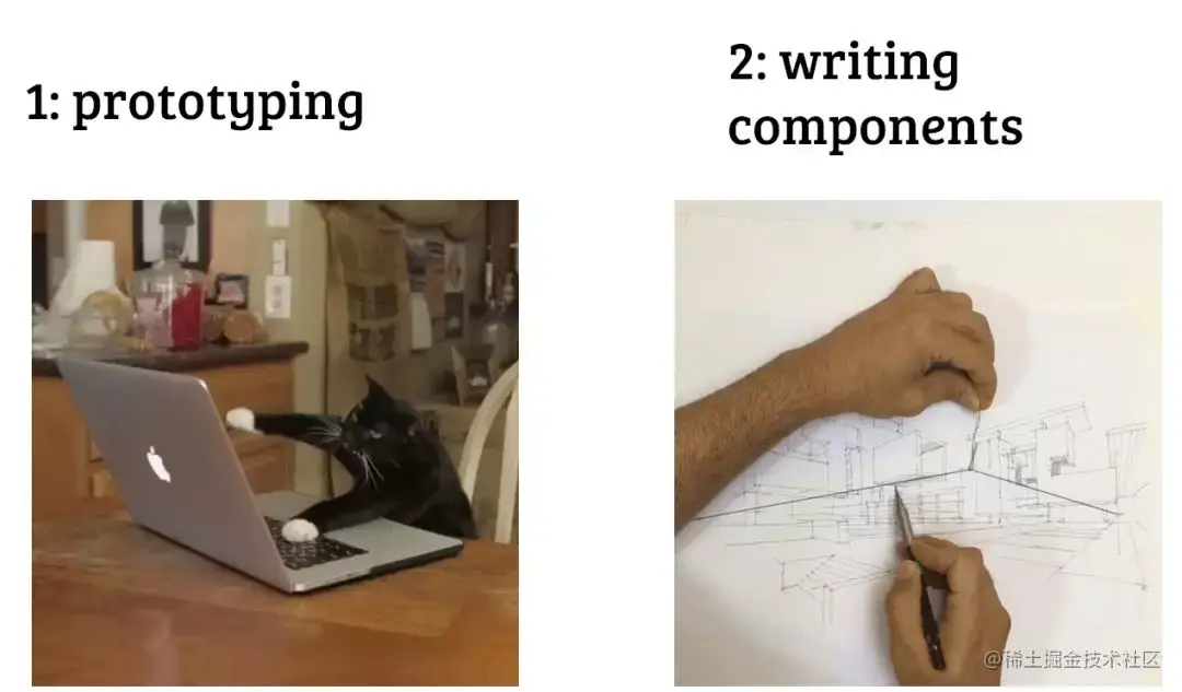 这里有两种写研究代码的模式,一种是写原型,一种是写组件。作为一名研究者,大多数时候我们都希望写原型,但是在没写好组件前是写不好原型的。而通过原型设计,有时候做出来的东西又是希望下次再复用的组件。因此这是编写代码的两种模式,它们并不独立。