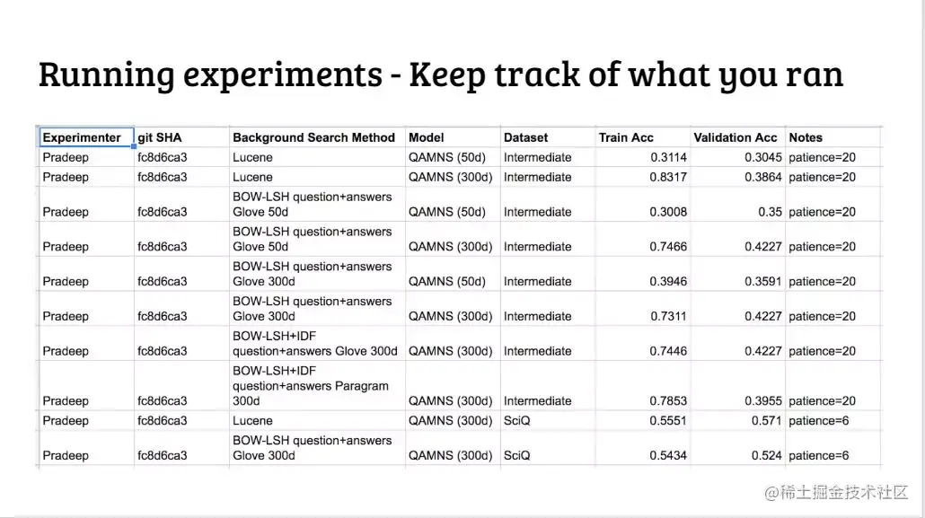 可以准备一个 Excel 表格,来记录实验结果。黑箱对比对于上下文理解有帮助,但不能深入理解两个结果之间的关系,因为有太多的变量在同时变化。我们需要每次仅改变一个变量,可以在代码中设置「开关」,将开关配置一些全局状态/依赖注入。