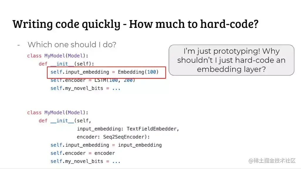 与写原型不同,开发可重复使用的组件有很多要注意的地方。我们的代码需要写清楚,这样就能聚焦于建模决策,而不考虑代码到底在做什么。