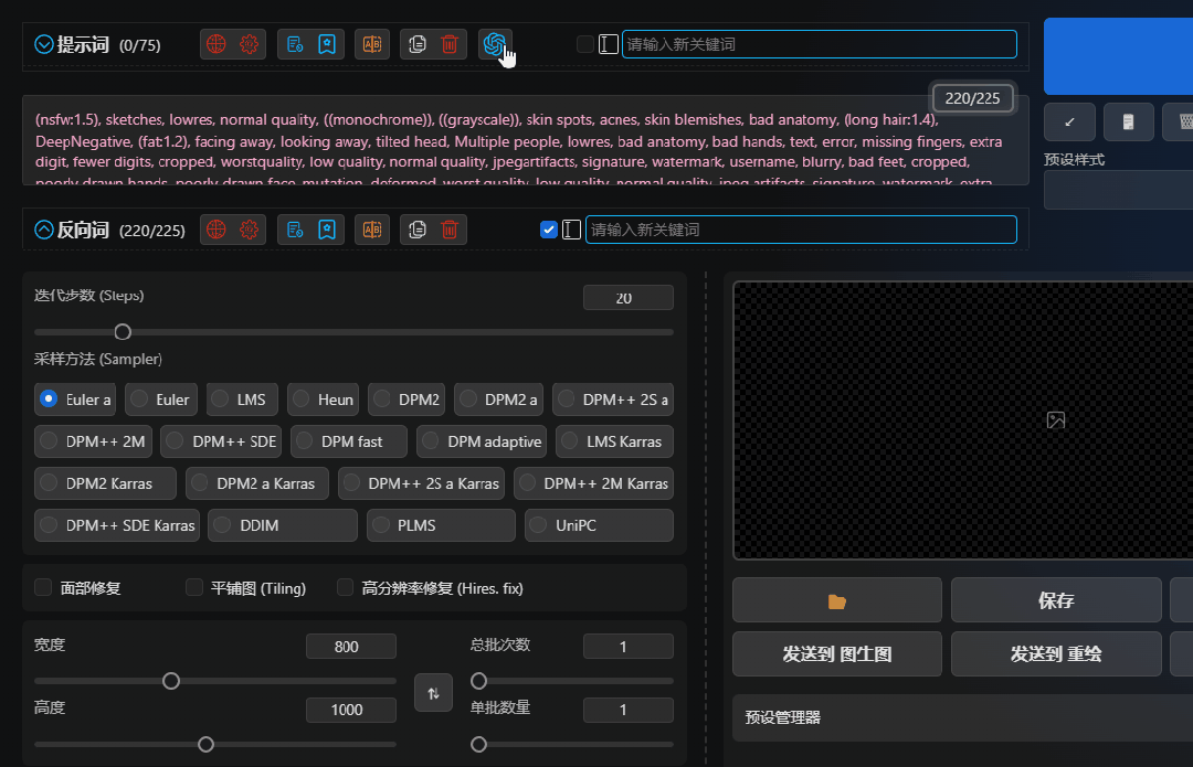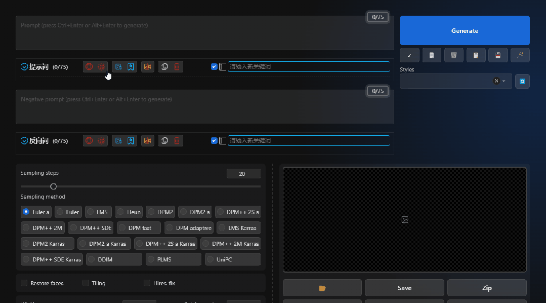 不管是翻译的界面,还是原UI的正反向输入框,都可以隐藏起来,可以留出更多的屏幕界面操作参数,就不用每次调完参之后,还得滑很久到最上面才能点击生成按钮了。