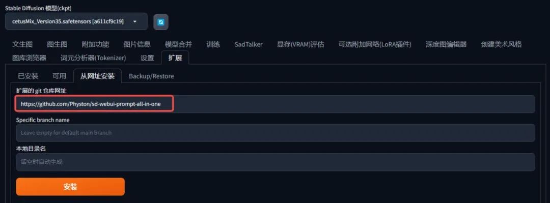 之后稍等片刻,即可安装成功(因为是github的链接,所以可能需要魔法,没关系,文末扫描可以提供插件包的,安装后请自行放置在stable-diffusion-webui\extensions\)。