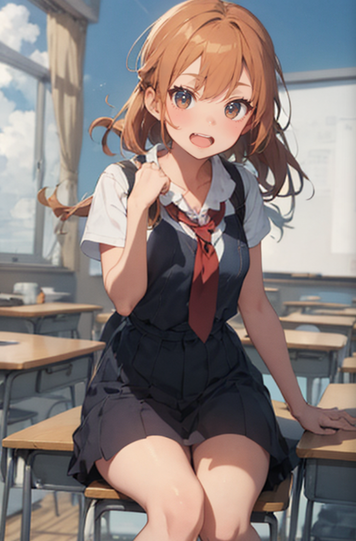 下图是仅靠提示词“Sitting in the classroom”生成的图片,虽然与原图相比,衣服的把控略显不足,但人物的面貌上面还是把控挺好的。