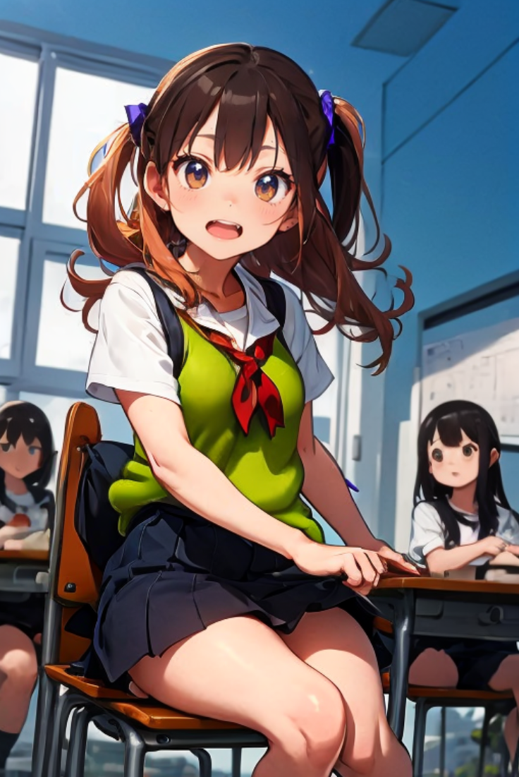仍然以”坐在教室里“为提示词,最后生成了一图这张照片。