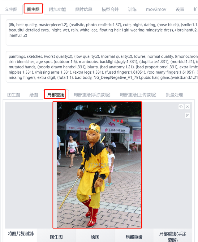 点击局部重绘,进入操作界面,将孙悟空图片拖进来,做为绘图参考。