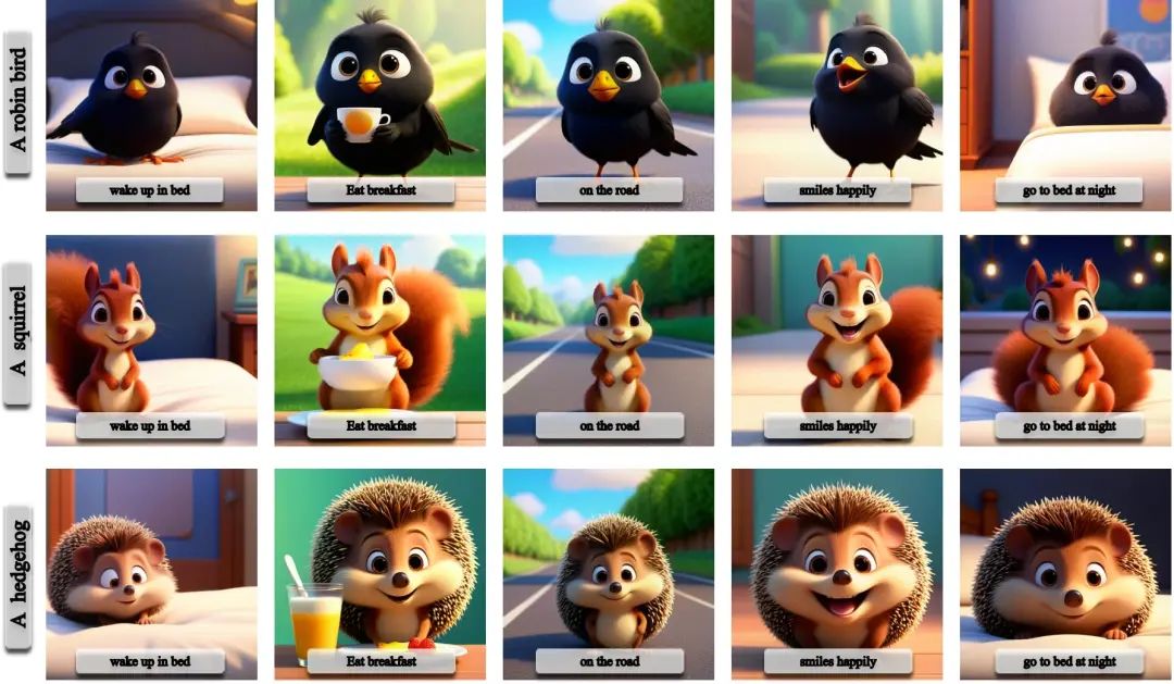 StoryDiffusion 能够创造出惊人的一致卡通风格角色。