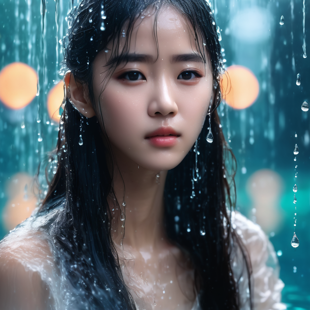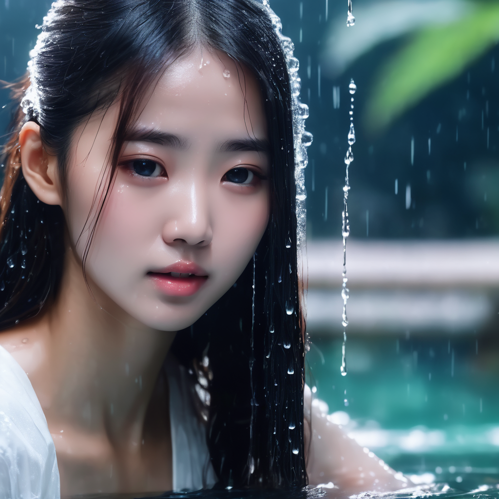 Asia girl, 1girl,long hair,half body leaking out of the water,water droplets,close-up,high-definition photography,close-projection,8K,details, best quality