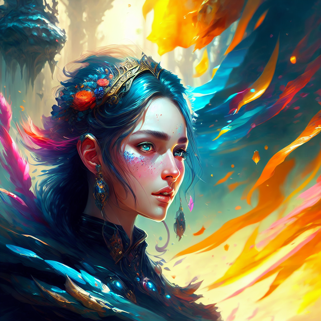 Female in a fantasy world, Fluid brushwork, Bright colors, Emphasis on light and atmosphere, realism, impressionism, Post-impressionism, light and color, attention to detail, by master of portraiture, by master of realism, (realism:1.2) and (naturalism:1.2), (impressionistic:1.2) brushwork, (portraiture:1.2) and (figurative:1.2) focus, (play of light and shadow:1.2), (elegant compositions:1.2) and (balanced:1.2) arrangements, (rich color palette:1.2) and (bold:1.2) use of color, and (masterful technique:1.2) with (attention to detail:1.2),