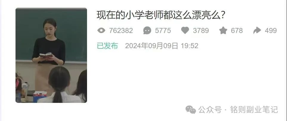 或者比如有朋友制作了一张老师讲课的图片,配上了一个文案,然后发到了小红书,直接爆了70万的播放