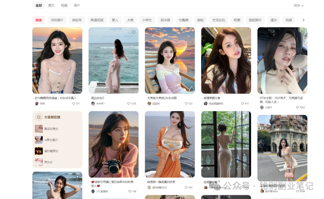 这些号里面有一些都是用Ai生成的,而不是只是发一个美女站在那里,再配上符合的文案,就能吸引精准的粉丝