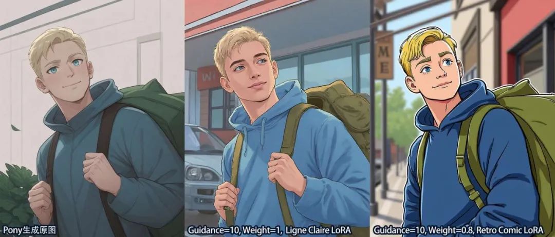 这张图里值得注意的是我控制了变量,LoRA权重都是1,但是改变了Guidance数值。