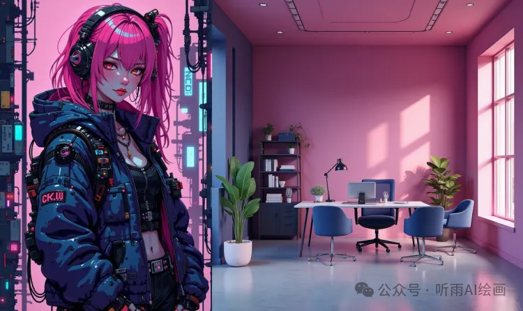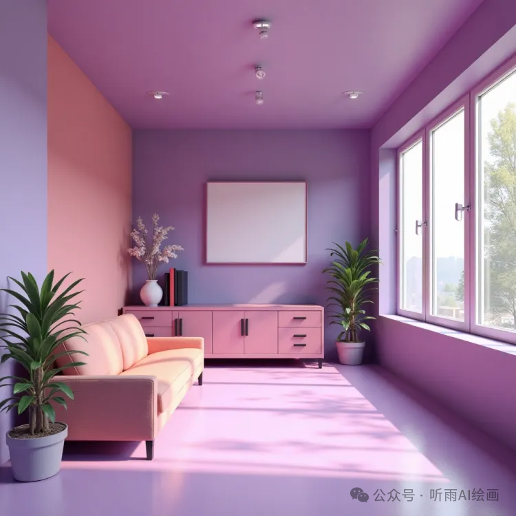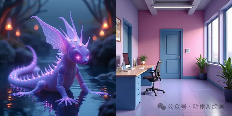 我们来看下效果,提示词:3D rendering of an office in vibrant colors.