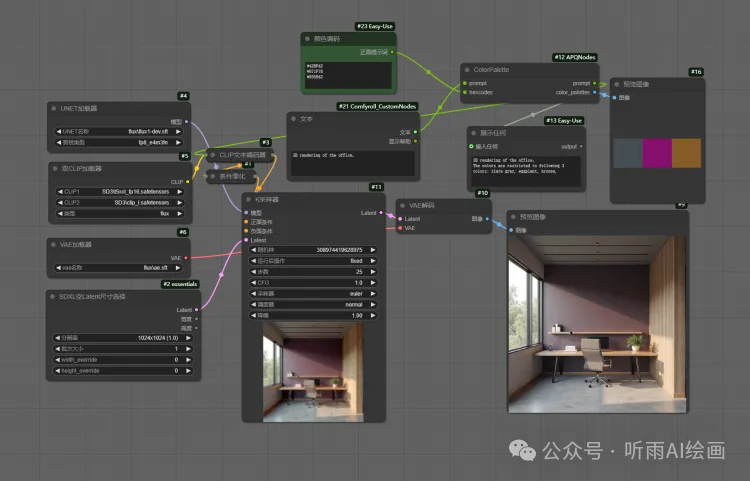 今天我们继续来介绍一个好玩的 ComfyUI 插件,这个插件主要是为了 Flux 设计的,可以让 Flux 更好的理解颜色,并辅助我们在生成的图片中更好的运用色彩,更容易生成品质大片。