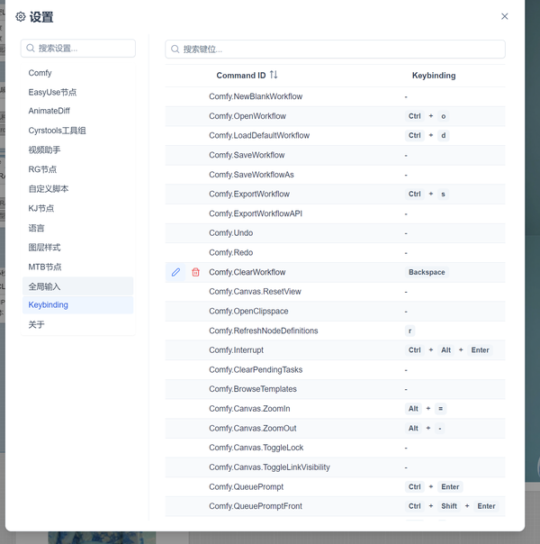 在Keybinding版块中,你可以浏览目前所有支持快捷键的功能,也可以将其修改为任何你喜欢的快捷键。