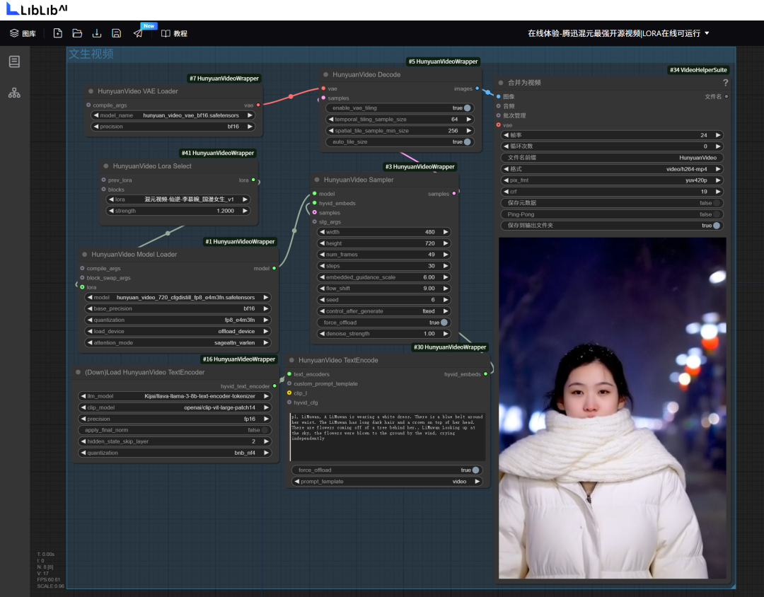 最新LIBLIBAI平台已支持Flux文生图和混元视频ComfyUI工作流在线体验: