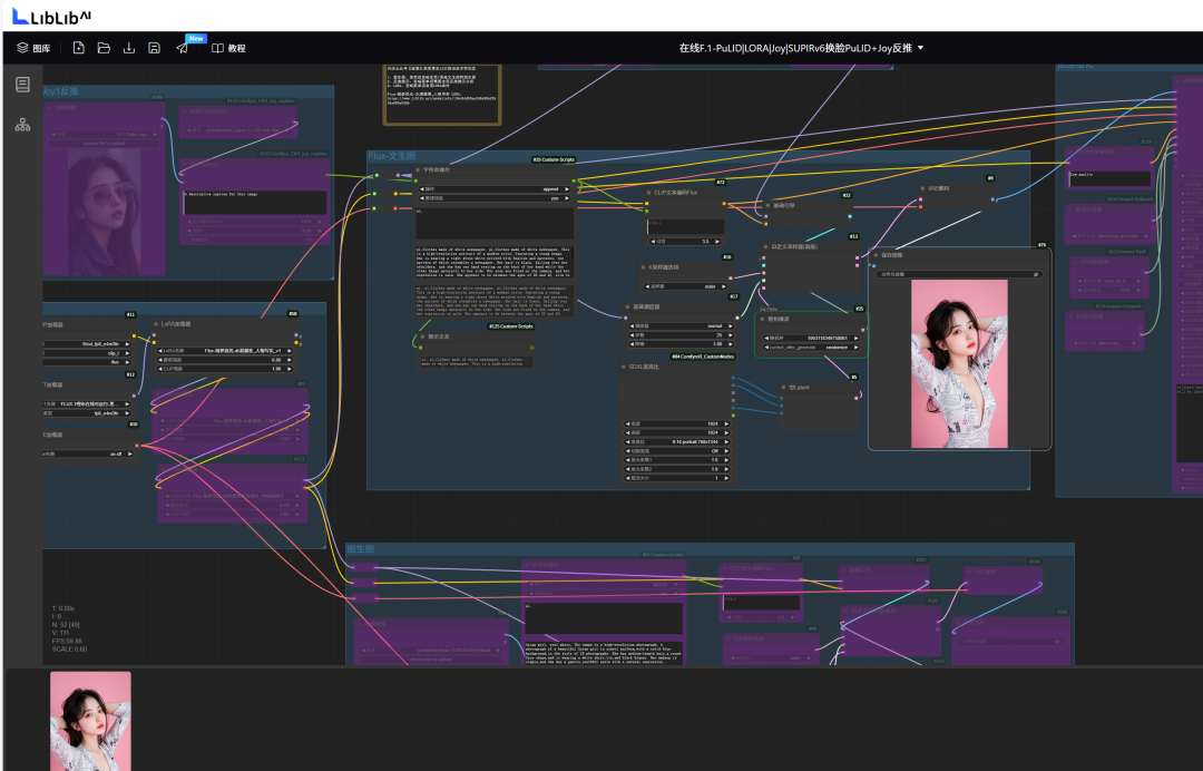 • 文生图-Flux文生图(PuLID|LORA|Joy|SUPIR)工作流:https://www.liblib.art/modelinfo/782aacd70f604da39e83368c696a02a8?versionUuid=9c5eceb01fb94d4d93d60fe2c0bd7468