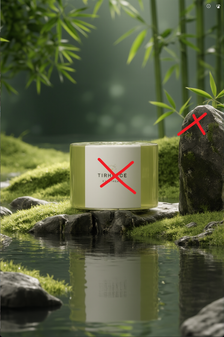 当然,除了控制之外,Comfy有N多的节点可以开发,比如生成的产品图片差强人意,也可以用inpaint技术来抹除主体.比如下图,产品不对,石头影响构图,所以抹掉,以便方便后期.