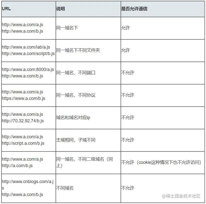 当协议、子域名、主域名、端口号中任意一个不相同时,都算作不同域。不同域之间相互请求资源,就算作“跨域”。常见跨域场景如下图所示: