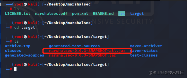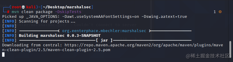 3 然后使用maven编译marshalsec成jar包,我们先进入下载的marshalsec文件中运行:
