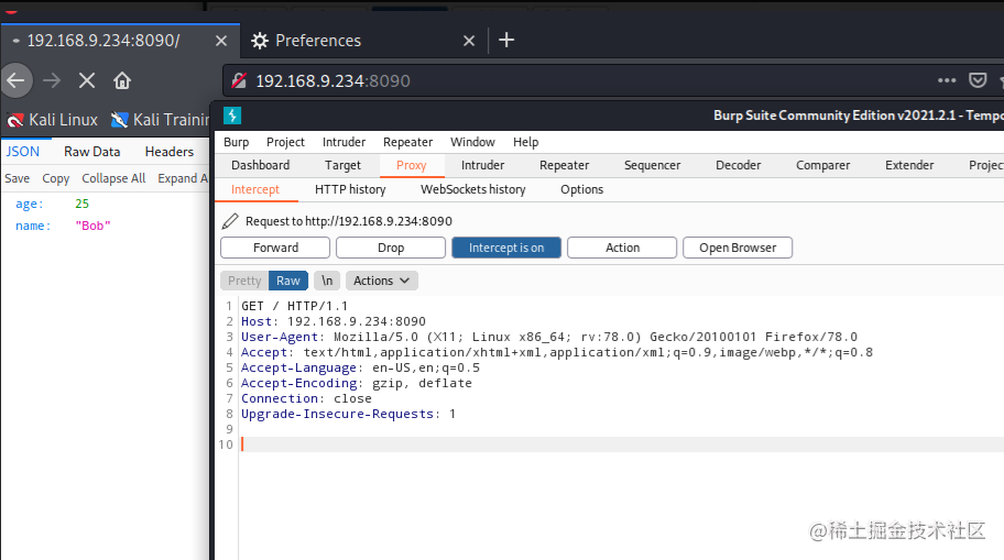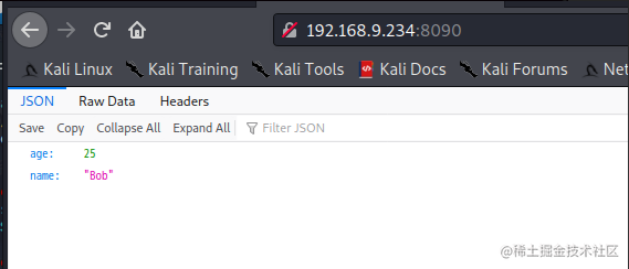 访问靶机,可以看见json格式的输出: