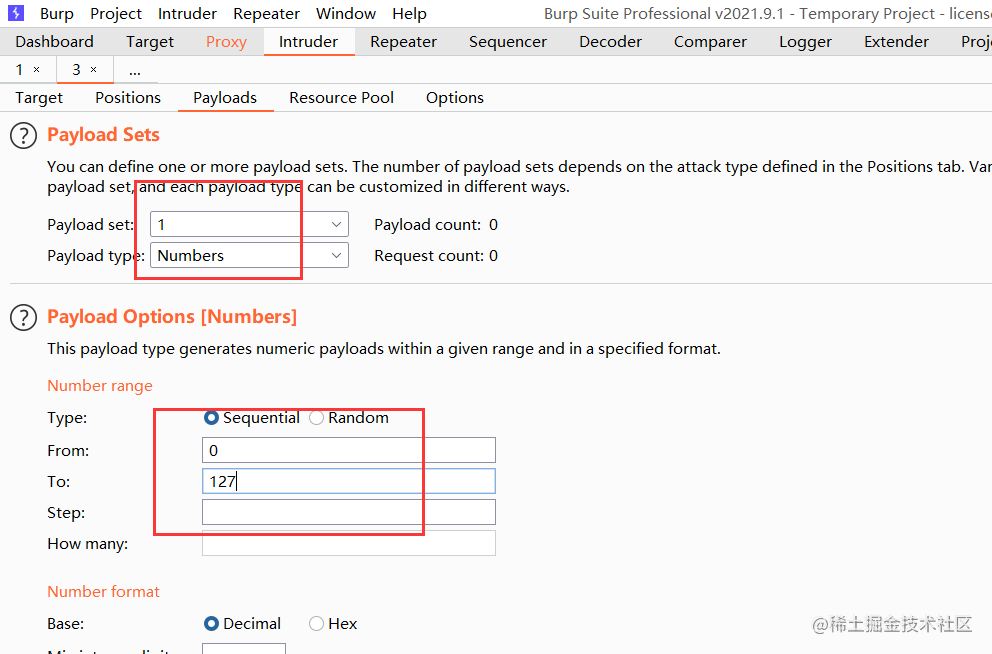 Payload sets中的 from 0 , to 127,还要加上步长 1 ,截图的时候没有注意!