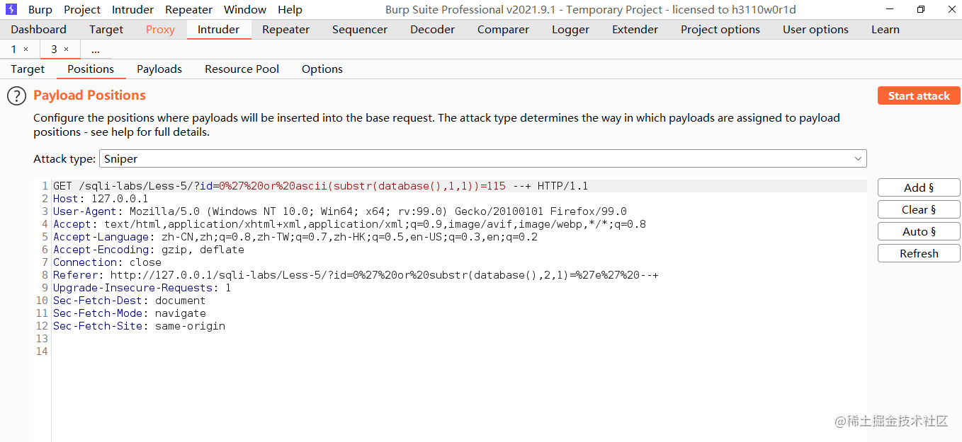 四.由于上图中我们只添加了一个改变的量,故payload set只需要选择一个,进行简单数字替换