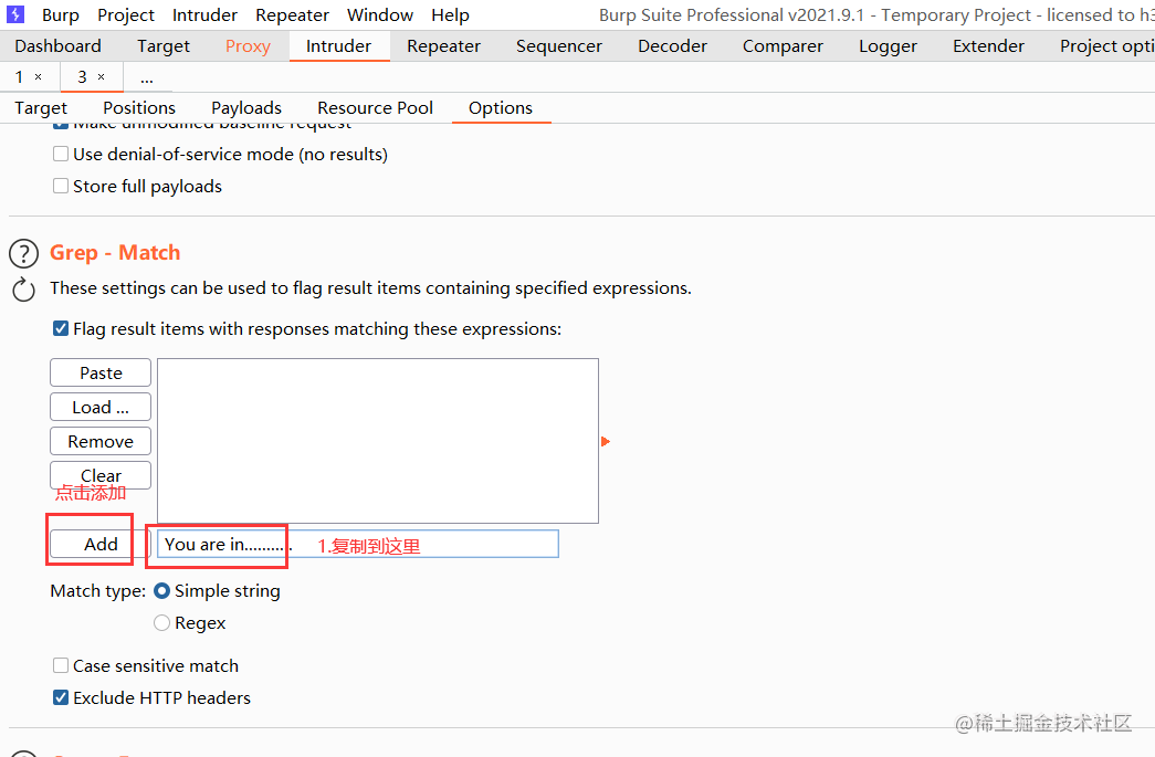 五.将Grep-Match中的全部清楚,由于正确结果会返回” you are in…",故将 ” you are in…"添加进去。